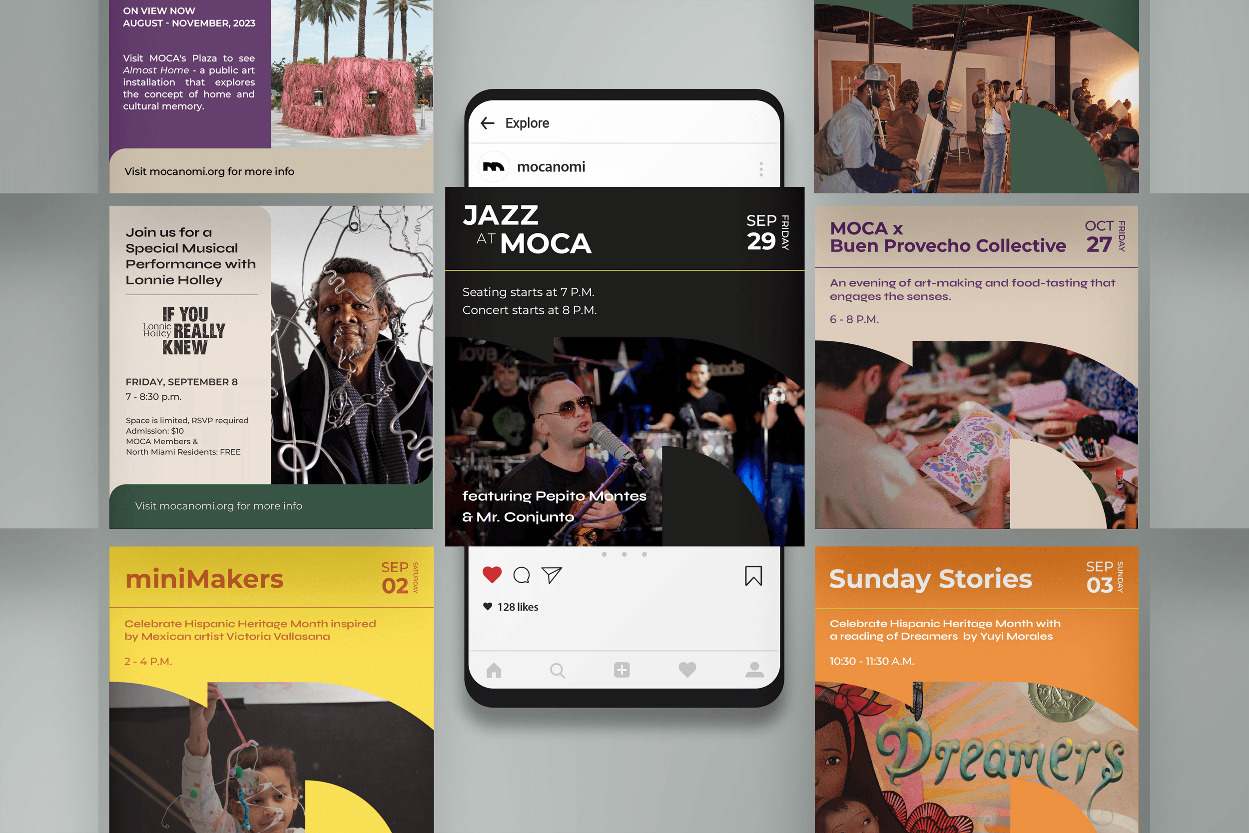 When I joined MOCA during their rebrand, I was responsible for creating various media and print assets, including internal stationery, social media posts, brochures, hanging banners, and wayfinding materials. Additionally, I designed new merchandise for the museum shop. View their Instagram for more of my work and motion graphics! @mocanomi