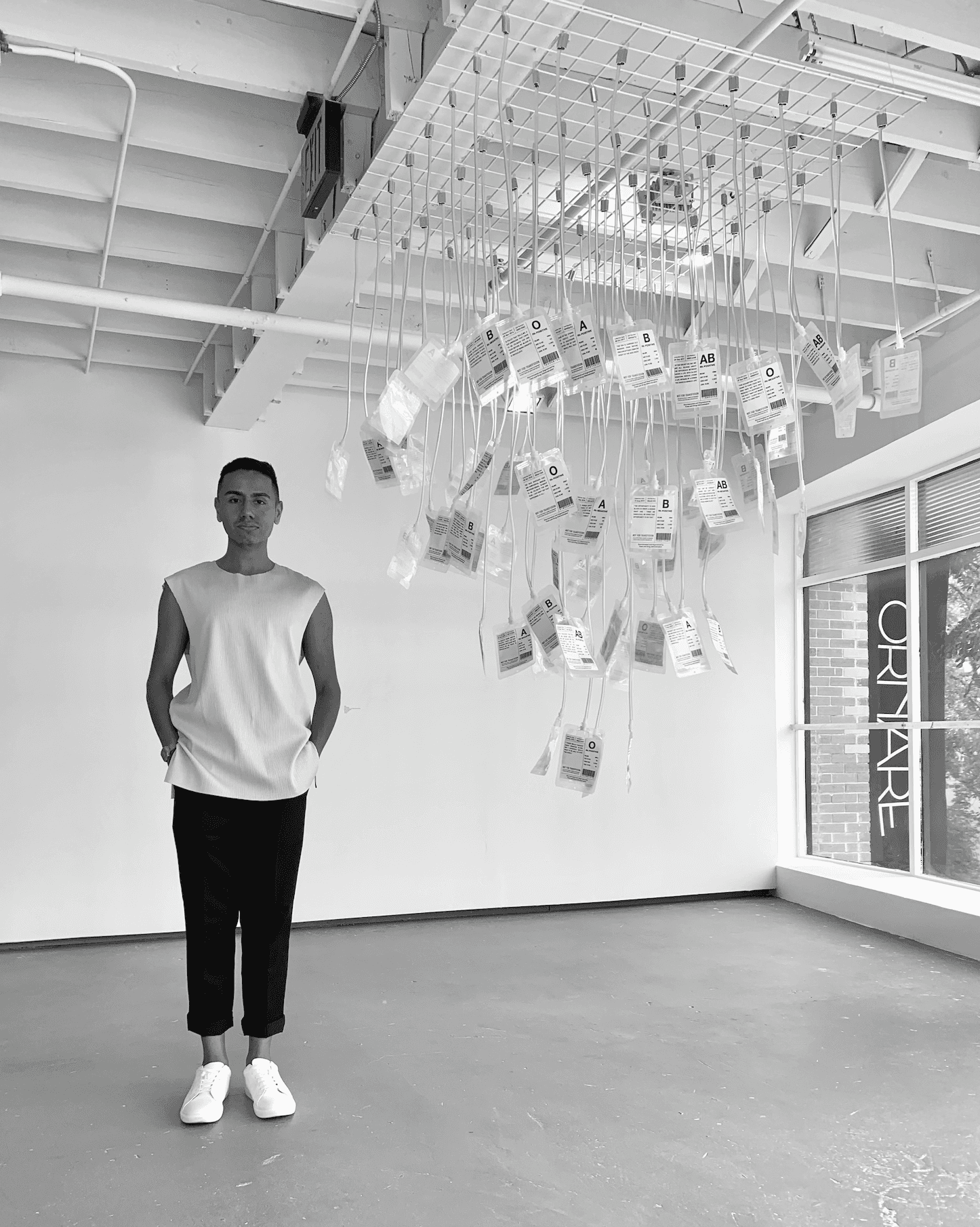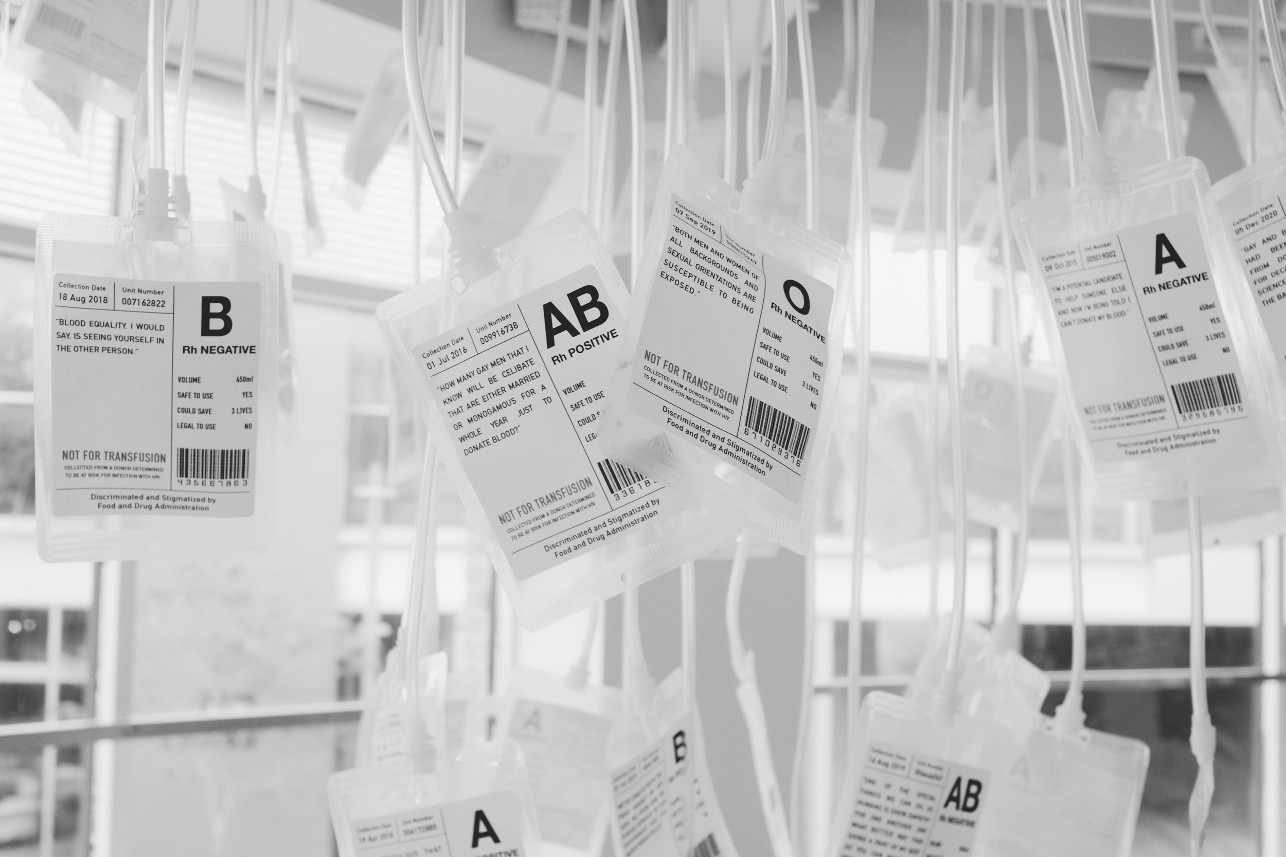 ‘MSM’ is an art installation piece for the ‘Unspecified Void’ exhibition that was shown at The Moore Building gallery - commenting on the FDA’s discriminatory blood donation policy towards Gay/Bisexual/Trans men in the U.S. The policy states that ‘men who have sex with men’ (MSM) must be celibate for three months, including those in monogamous relationships, and practice safe sex. It reinforces negative stereotypes, particularly that AIDS and HIV is a “gay disease.” With modern technology and testing, statistics have proven that HIV in the gay community has decreased since 2015, which shows that Gay/Bisexual/Trans men can safely donate blood. Since the pandemic, blood banks have been low on volunteer donors, yet the FDA still reinforces this policy when plenty of men are willing to donate their blood but cannot. All quotes are derived from news outlets, articles, and personal stories from individuals posting their blood-donating experience online.